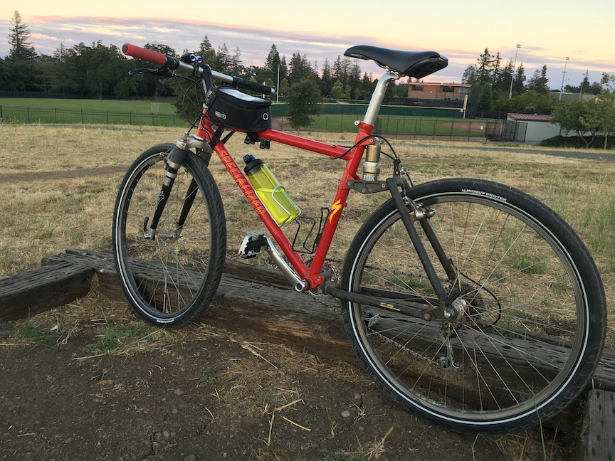 2013: I didn’t have a bike for a while so I bought a used Stumpjumper from a guy in Los Altos. I removed the large chainring and put on a bash guard, grips, pedals and a tune up. The bike was okay. Not much different than my old Stumpjumper FS from 1991 to be honest but the frame was M4 aluminum and not steel.