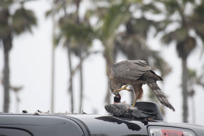 Coopers Hawk eating a pigeon